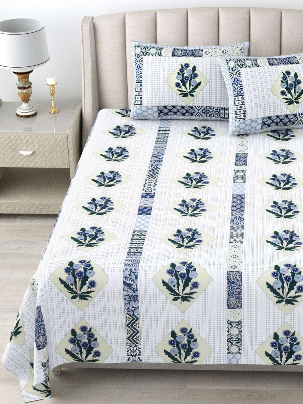 100% Pure Cotton Traditional Printed Bedsheet for Double Bed King Size Bedsheet with 2 Pillow Covers