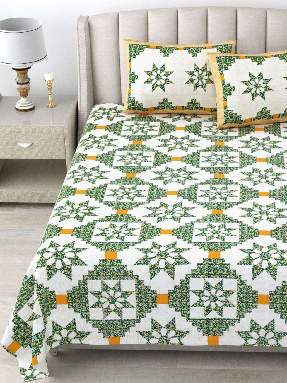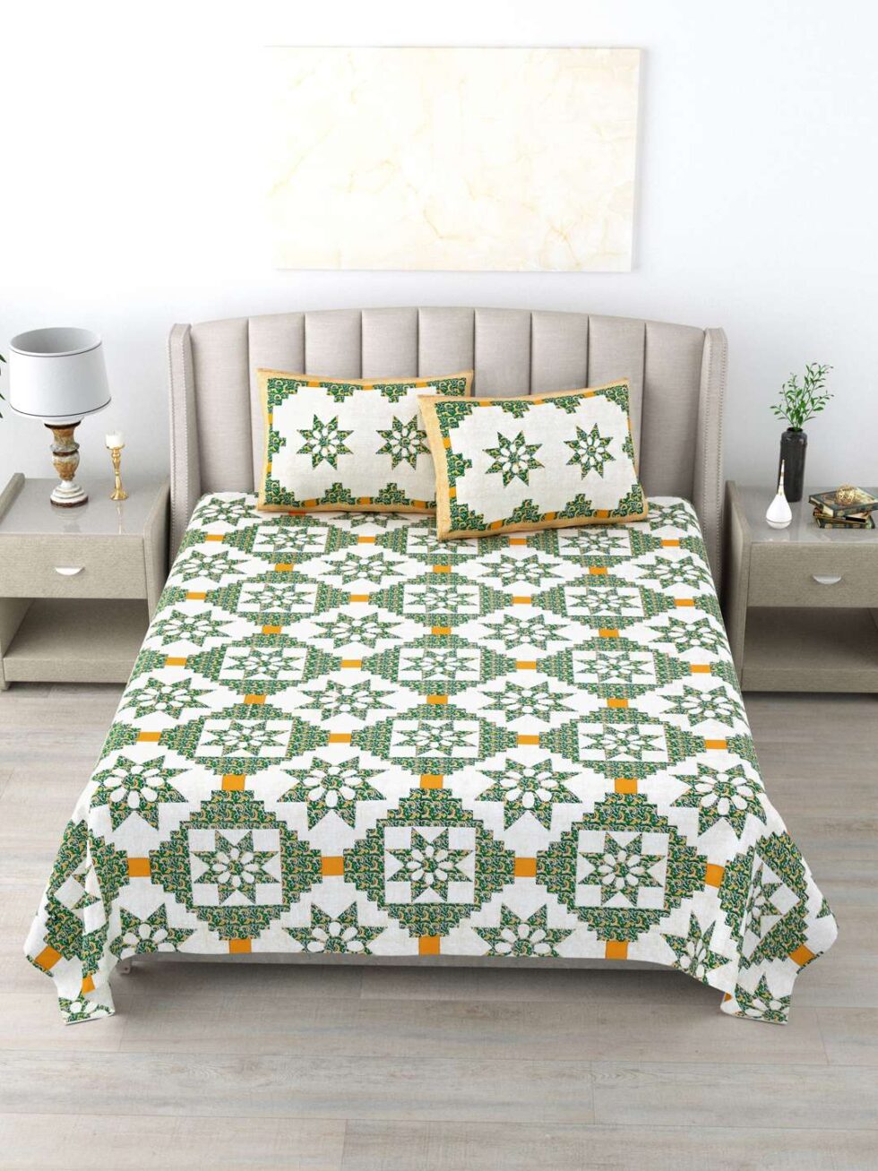 100% Pure Cotton Traditional Printed Bedsheet for Double Bed King Size Bedsheet with 2 Pillow Covers