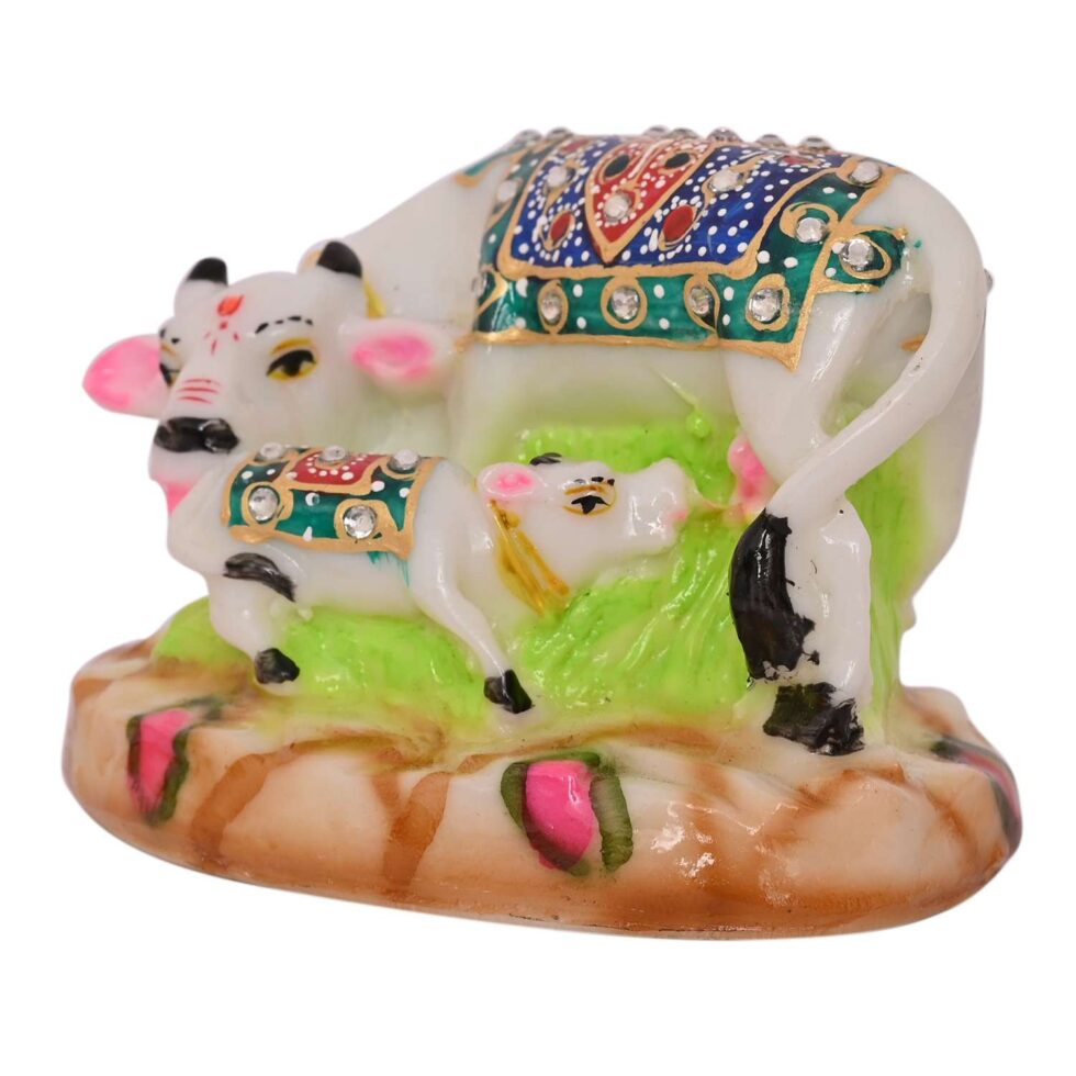 White Marble Kamdhenu Cow and Calf Statue (8.5 cm x 12 cm)